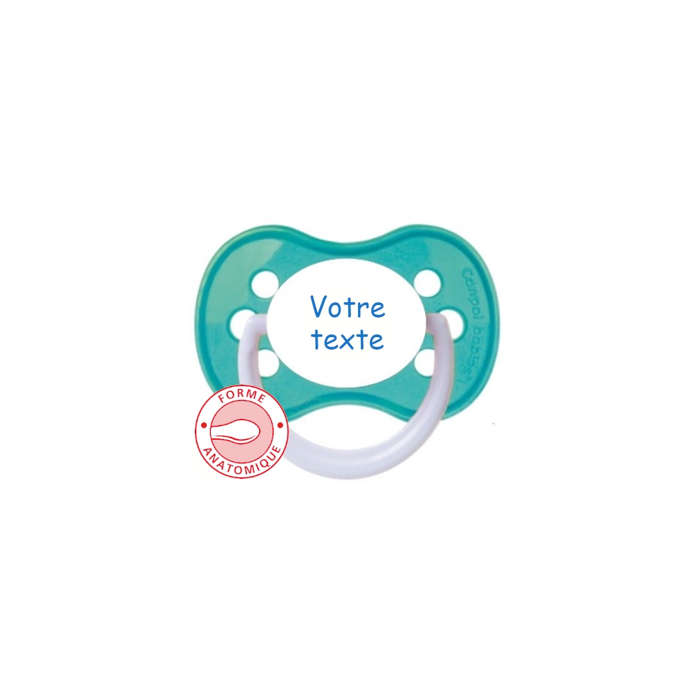 Cette sucette personnalisée est équipée d'une Sucette de haute qualité et s'adapte idéalement à la forme du palais de bébé.