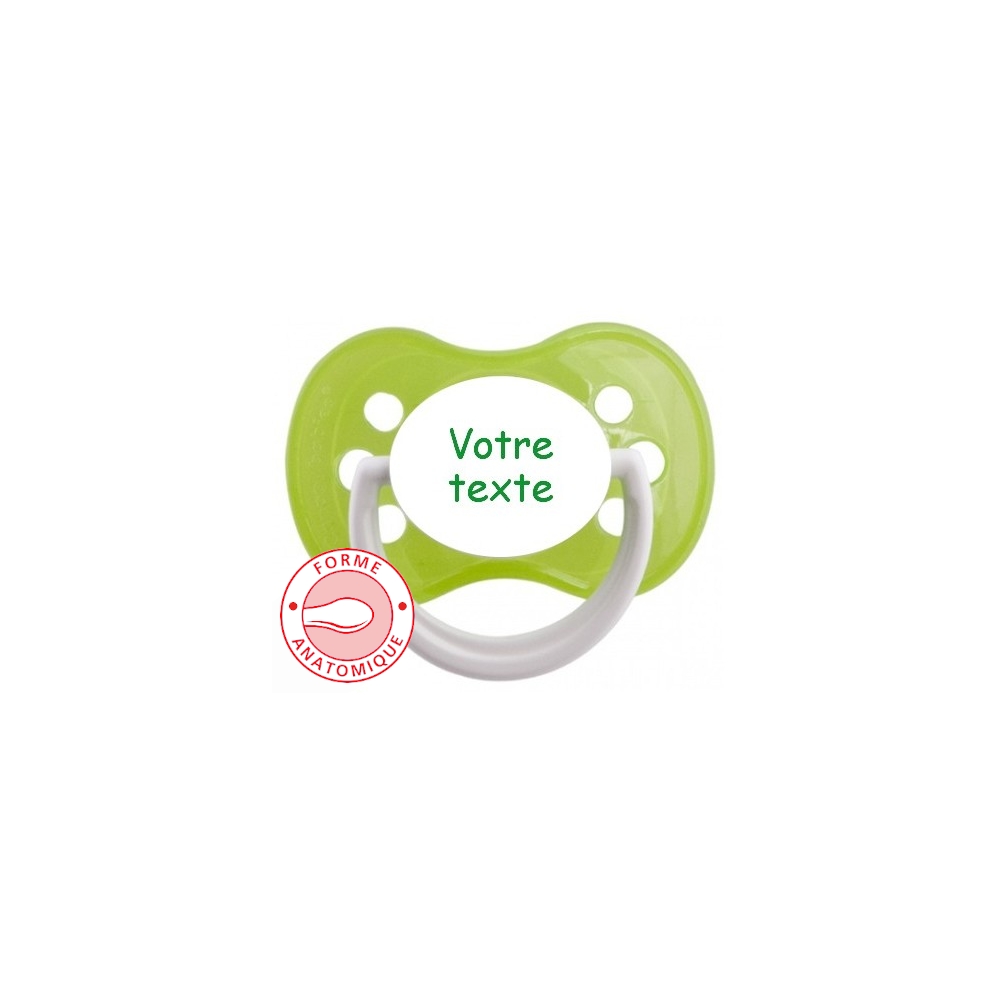 Cette sucette personnalisée est équipée d'une Sucette de haute qualité et s'adapte idéalement à la forme du palais de bébé.