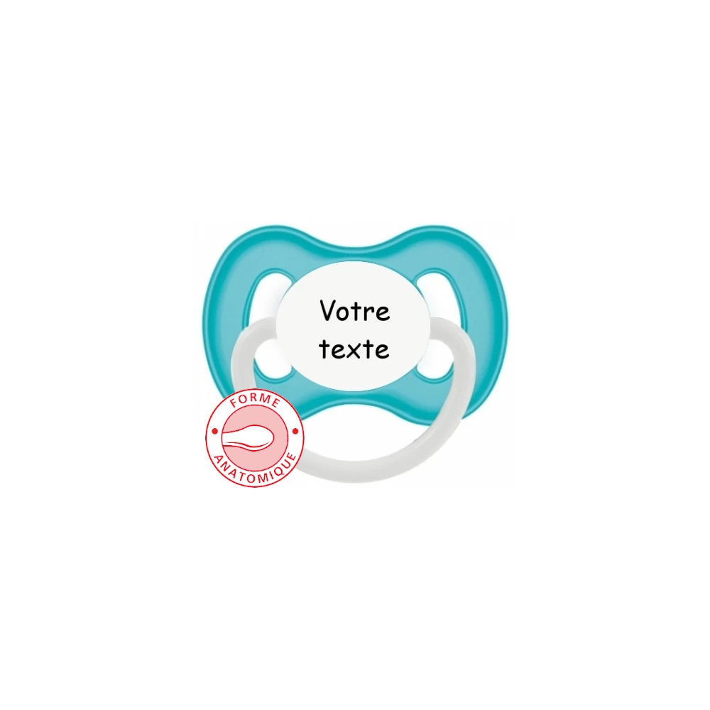 Cette sucette personnalisée est équipée d'une Sucette de haute qualité et s'adapte idéalement à la forme du palais de bébé.