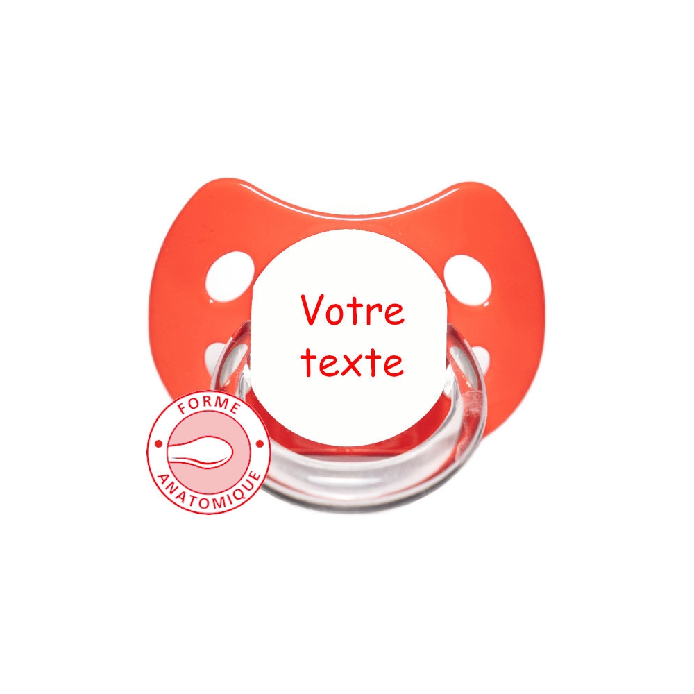 Cette sucette personnalisée est équipée d'une Sucette de haute qualité et s'adapte idéalement à la forme du palais de bébé.