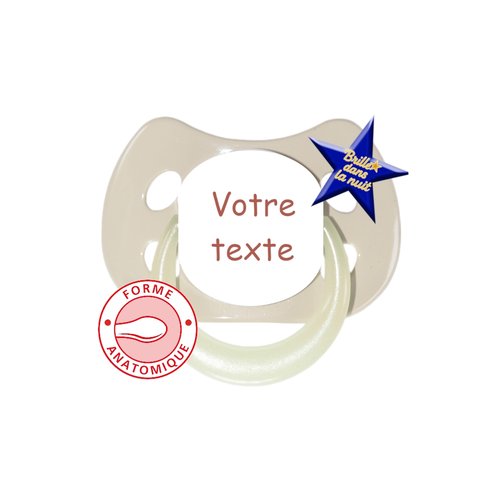 Cette sucette personnalisée est équipée d'une Sucette de haute qualité et s'adapte idéalement à la forme du palais de bébé.