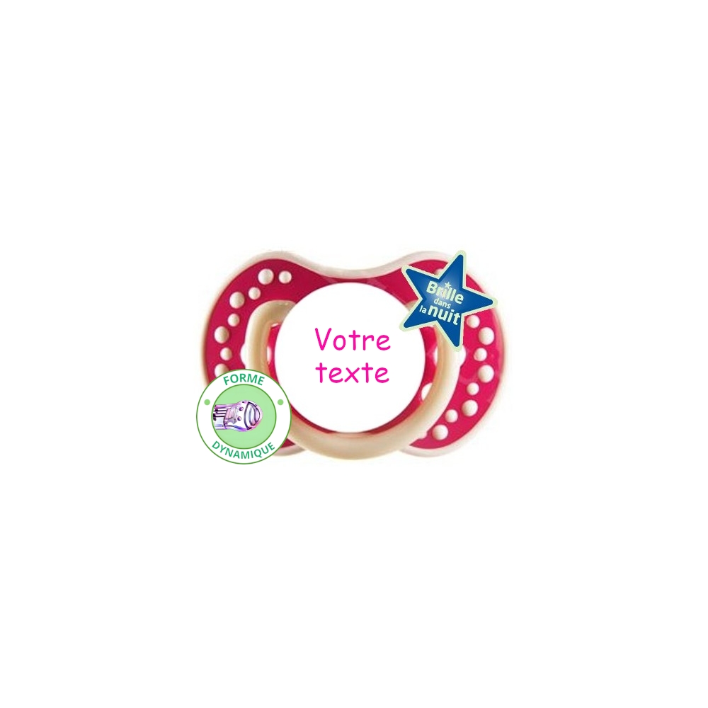 Cette sucette personnalisée est équipée d'une Sucette de haute qualité et s'adapte idéalement à la forme du palais de bébé.