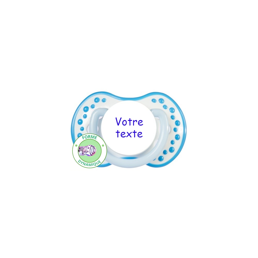 Cette sucette personnalisée est équipée d'une Sucette de haute qualité et s'adapte idéalement à la forme du palais de bébé.