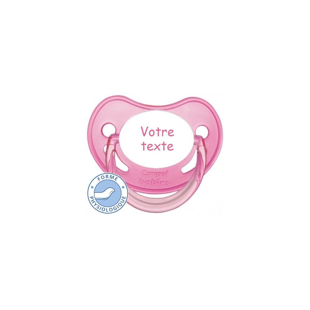 Cette sucette personnalisée est équipée d'une Sucette de haute qualité et s'adapte idéalement à la forme du palais de bébé.