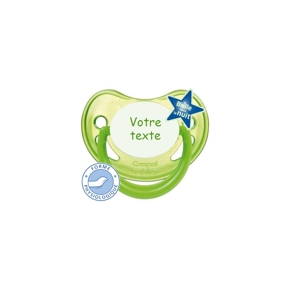 Cette sucette personnalisée est équipée d'une Sucette de haute qualité et s'adapte idéalement à la forme du palais de bébé.