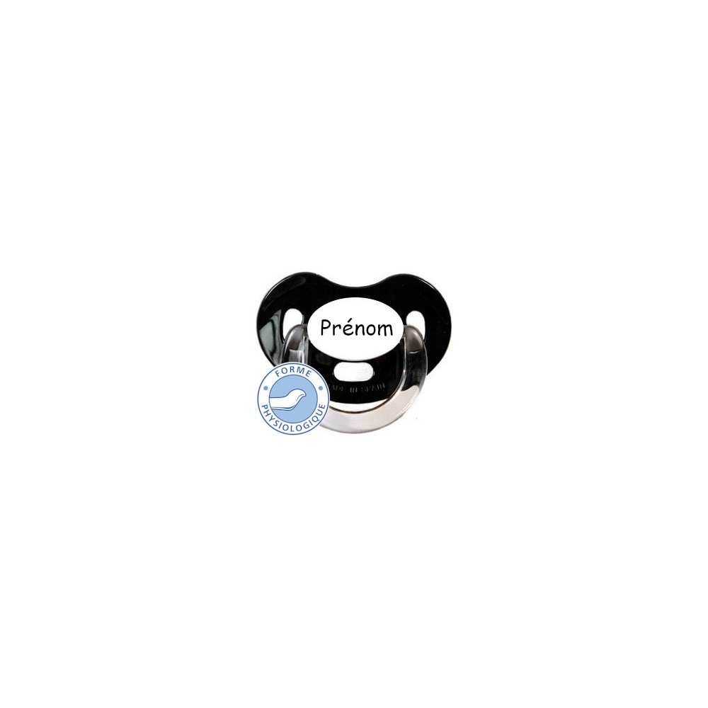 Cette sucette personnalisée est équipée d'une Sucette de haute qualité et s'adapte idéalement à la forme du palais de bébé.
