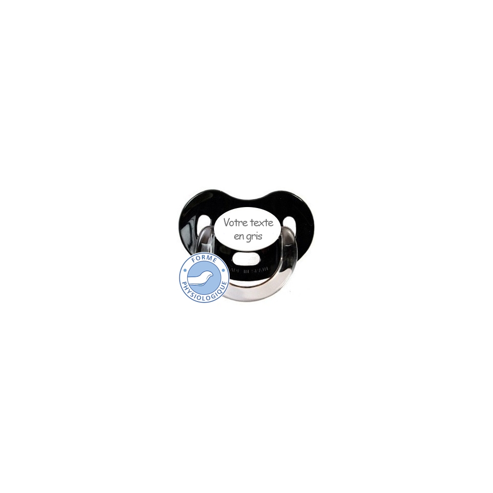 Cette sucette personnalisée est équipée d'une Sucette de haute qualité et s'adapte idéalement à la forme du palais de bébé.