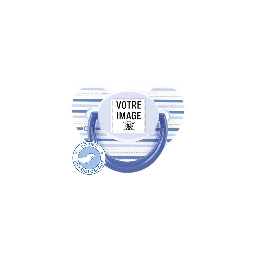 Cette sucette personnalisée est équipée d'une Sucette de haute qualité et s'adapte idéalement à la forme du palais de bébé.