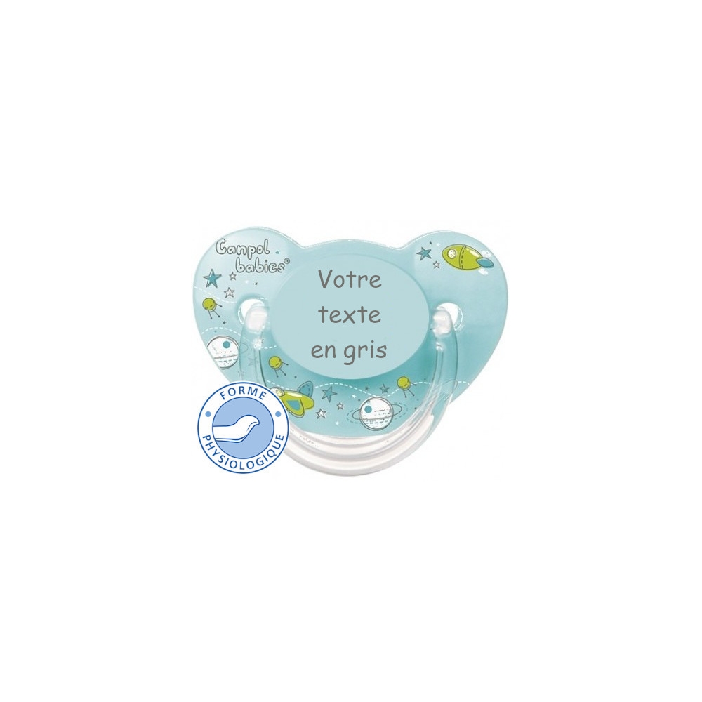 Cette sucette personnalisée est équipée d'une Sucette de haute qualité et s'adapte idéalement à la forme du palais de bébé.
