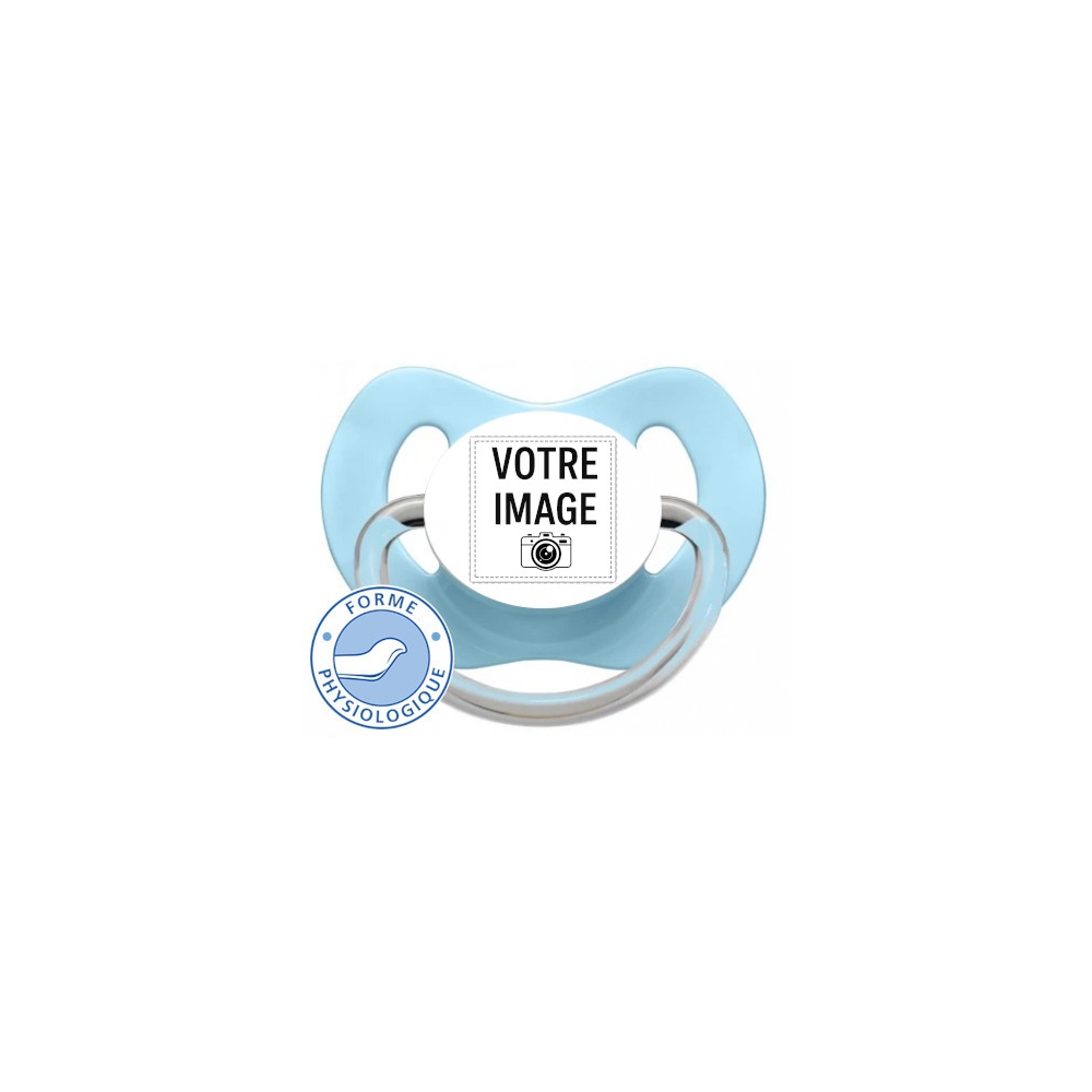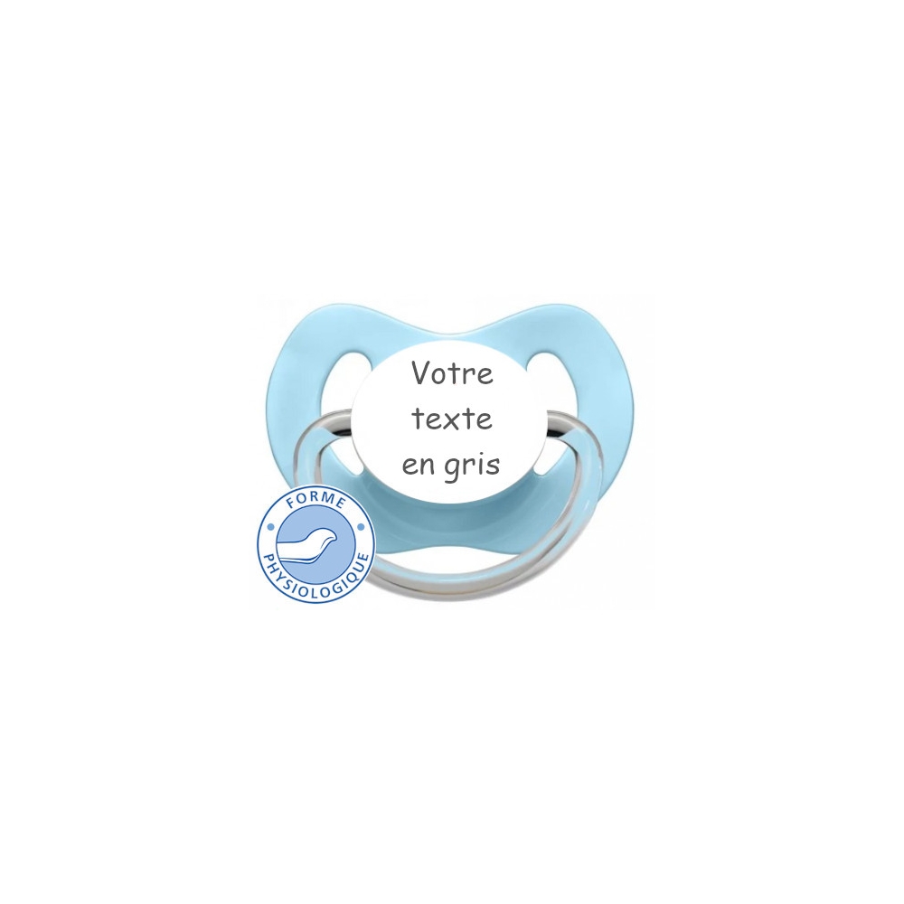 Cette sucette personnalisée est équipée d'une Sucette de haute qualité et s'adapte idéalement à la forme du palais de bébé.