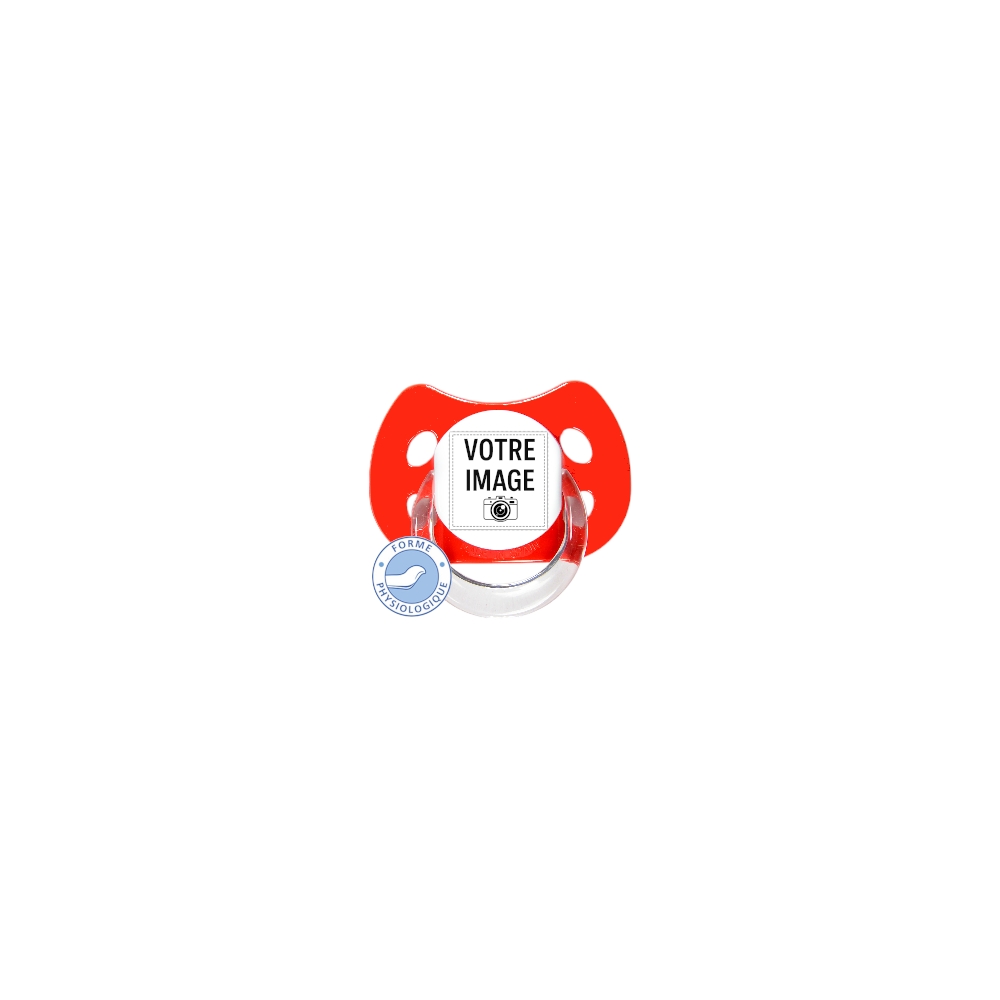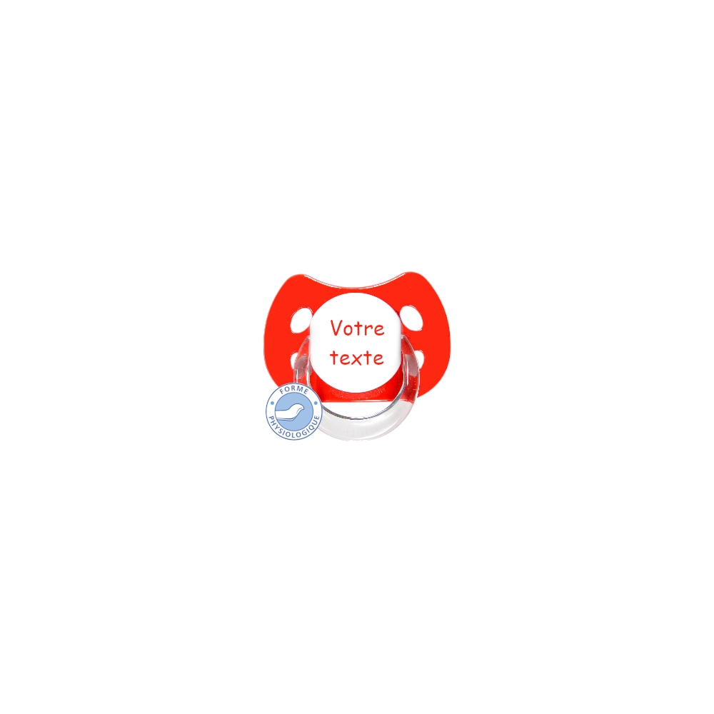 Cette sucette personnalisée est équipée d'une Sucette de haute qualité et s'adapte idéalement à la forme du palais de bébé.