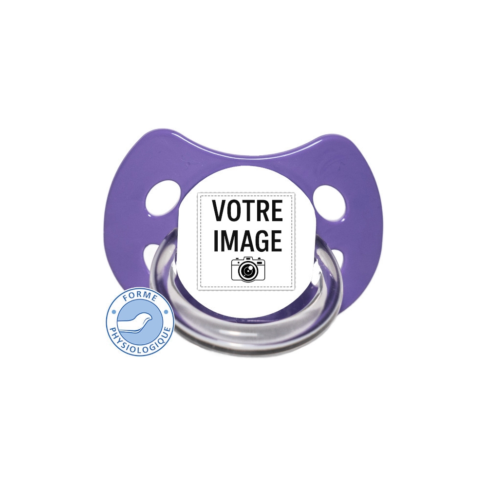 Cette sucette personnalisée est équipée d'une Sucette de haute qualité et s'adapte idéalement à la forme du palais de bébé.