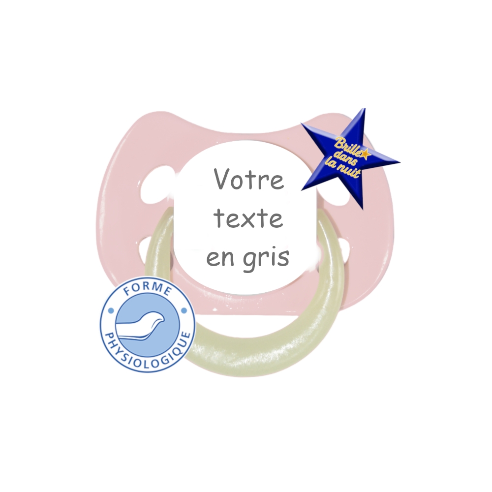 Cette sucette personnalisée est équipée d'une Sucette de haute qualité et s'adapte idéalement à la forme du palais de bébé.