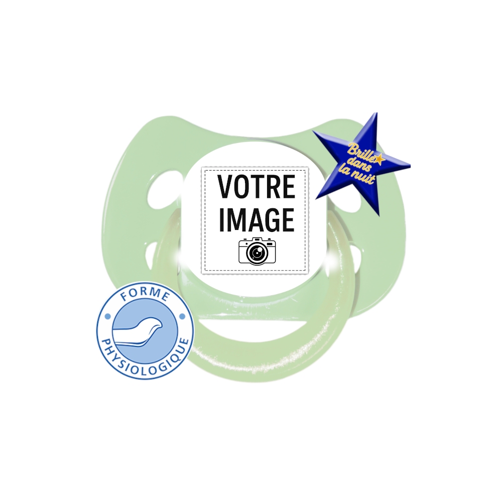 Offrez à votre bébé confort, sécurité et élégance avec la tétine personnalisée MODE vert amande fluorescente physiologique.