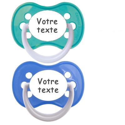 2 sucettes bébé personnalisées avec des textes différents, c'est possible!
